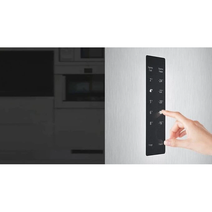ثلاجة إل جي بتقنية نو فروست مع فريزر علوي تجمع بين الأداء العملي والتصميم الأنيق، بسعة صافية تبلغ 401 لترًا لتلبية جميع احتياجات التخزين. تضمن لوحة التحكم باللمس المبتكرة سهولة ضبط درجات الحرارة.
